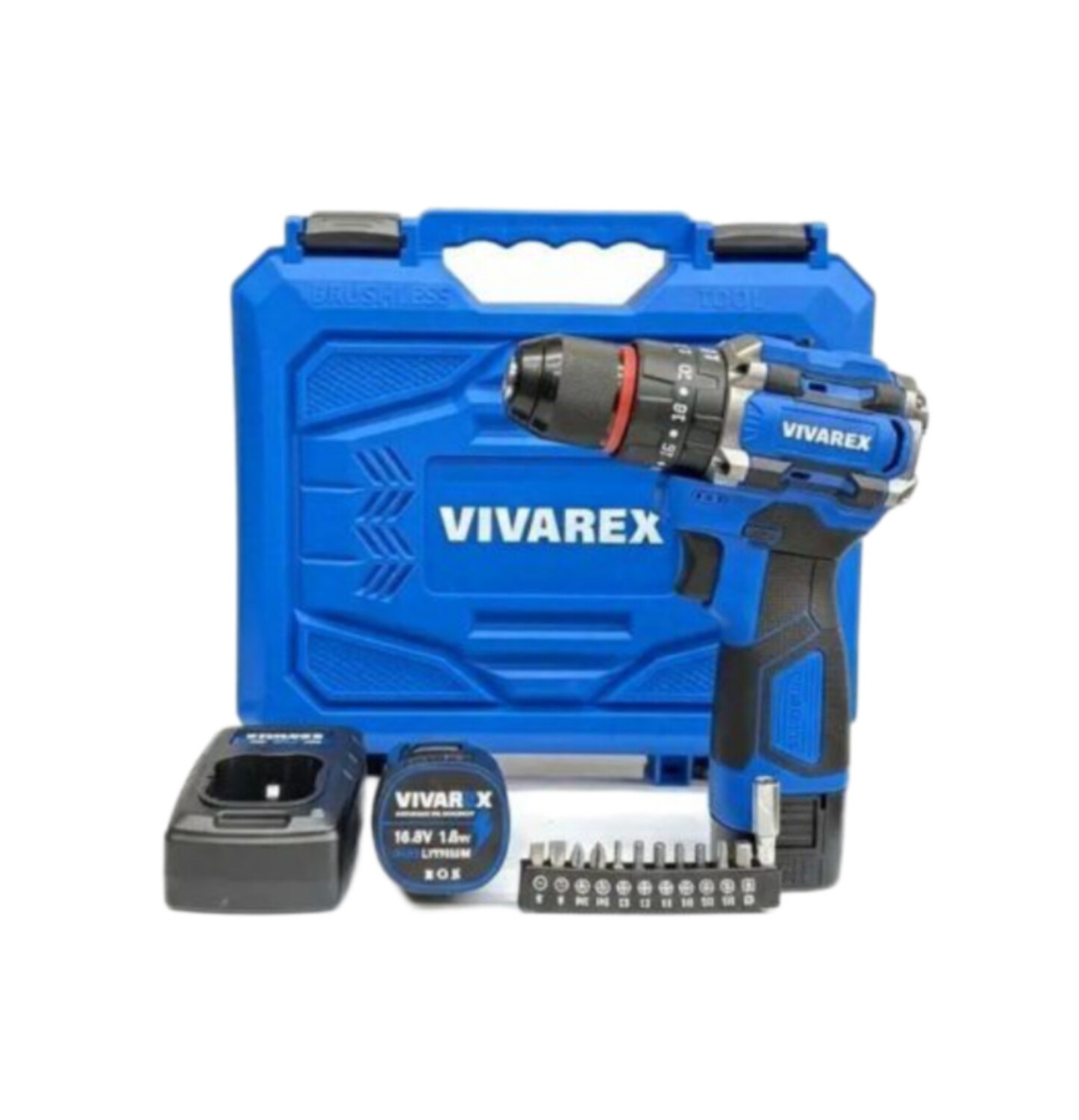 دریل پیچ گوشتی شارژی 16.8 ولت ویوارکس چکشی . براش لس . سه نظام فلزی . ترکمتر دار 2 باتری VR1608 (ارسال از ابزارحسین 24)