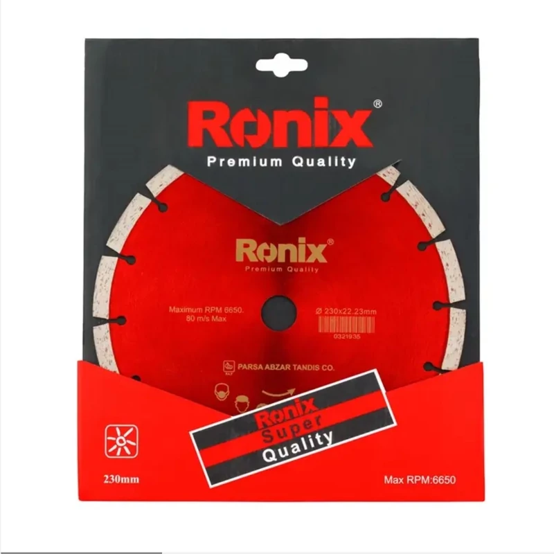 ویژگی ها: - تولید شده با فرایند Hot Press توسط ماشینآلات تمام اتوماتیک به منظور افزایش قدرت برش و طول عمر صفحه - استفاده از فرمولاسیون پیشرفته در قسمت الماسه به صورت یکنواخت جهت یکسان ماندن کیفیت برش، افزایش عمر کارکرد و ارائه برشی خنک - مجهز به سگمنت بلند با ارتفاع 10 میلیمتر و تکنولوژی نوین در تولید، برای ایجاد شیارهای منظم در تمام سطح سگمنت در جهت کاهش اصطکاک، افزایش سرعت برش و کیفیت یکسان برش از ابتدا تا انتهای ارتفاع سگمنت - ساخته شده از موادی با کیفیت بالا که عملکرد برش را بهینه و دوام صفحه را تضمین میکنند - ایده آل برای برش انواع گرانیت - در اندازههای مختلف که تمام نیازهای برشی شما را پوشش میدهد - مناسب برای برشهای خشک و تر - تحت استاندارد TUV و CE اروپا مشخصات کد محصول RH-350۱ ابعاد ۲۳۰ میلیمتر ارتفاع سگمنت 10 میلیمتر قطر سوراخ وسط صفحه 22.2 میلیمتر