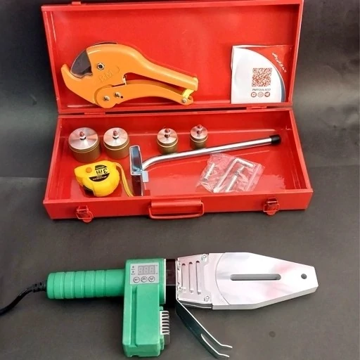 وزن : 1.4 کیلوگرم ابعاد : 43 × 7 × 9 سانتی متر توان : 2000 وات بازه توان : 2000 – 2500 وات انواع لوله قابل استفاده : PP – R – PE – PB سایز سری های گرم کننده : 20 – 25 – 32 – 40 میلی متر ترموستات ایمنی : دارد قابلیت تنظیم حرارت : دارد جعبه فلزی حمل : دارد اقلام-همراه : – دو لقمه جفت گوشه زن 20-25 – چهار لقمه جفت 20-25-32-40 – پایه نگه دارنده – پیچ گوشتی – جعبه فلزی – آچار الن سایر-مشخصات : – قابلیت تنظیم دما به صورت دستی از 50 تا 300 درجه سانتی گراد – کیفیت ساخت عالی و استفاده از متریال درجه یک در ساخت – دارای آچار جهت باز کردن و بستن راکت ها – دارای لقمه های یدکی اضافی – دارای کیف فلزی شکیل و مستحکم – قابل استفاده با برق شهری