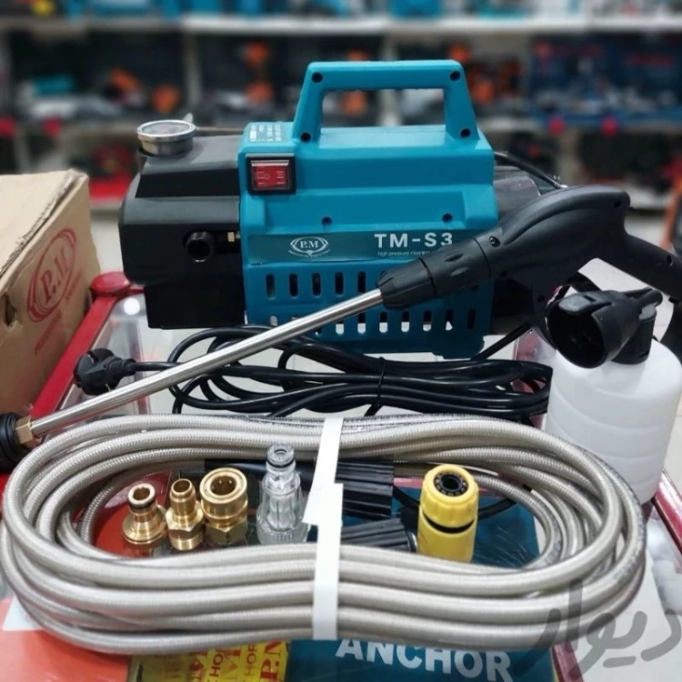 کارواش 110 بار دینامی ✅️ کیفیت عالی ✅️ دارای 1 سال گارانتی ✅️ شیلنگ فشار قوی ✅️ اتصالات ✅️ تفنگ ، لانس ✅️ لنس + دفترچه راهنما + برگ گارانتی شرکت پی ام ، آنکور